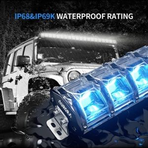 - Heavy-duty Aurora 10–50 Inch Off Road LED Light Bar with combo beam pattern for both distance and wide peripheral lighting.