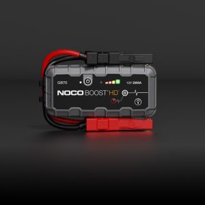 NOCO GB70 2000A 12V Boost HD UltraSafe Jump Starter is a heavy-duty lithium jump pack that safely starts dead 12-volt batteries in seconds. It’s built for gas engines up to 8.0L and diesel engines up to 6.0L, with spark-proof technology, reverse-polarity protection, and a rugged, IP65 water-resistant design.